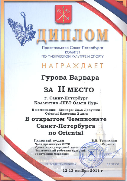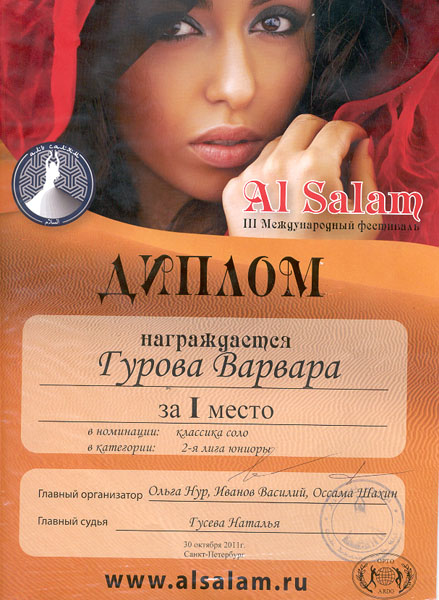 Уже почти год Варя занимает призовые места на всех конкурсах и соревнованиях, в которых она принимает участие. А участвует она в конкурсах исполнителей восточных танцев.