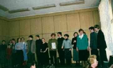 Зал был полон. Артисты, организаторы вечера: преподаватель литературы Лилия Николаевна Эрик, режиссер, концертмейстер-заслужили бурю аплодисментов. После вечера захотелось перечитать лучшие произведения одного из гениев русской литературы. Ольга Эпштейн, 10”Б” класс. Литературный вечер, посвященный Ф.М.Достоевскому, я видел "изнутри": сам участвовал в нем. Все играли очень хорошо, кроме вашего покорного слуги. Выходить на сцену, видеть публику в зале мне было страшновато. Спасала моя партнерша (Люда Борд), которая замечательно сыграла бабушку из "Игрока". А вообще оказалось, что репетировать и играть в спектакле очень интересно. И если в будущем Вы, уважаемая Л.Н.Эрик, задумаете ставить спектакль и предложите мне роль,- я дам себя уговорить.